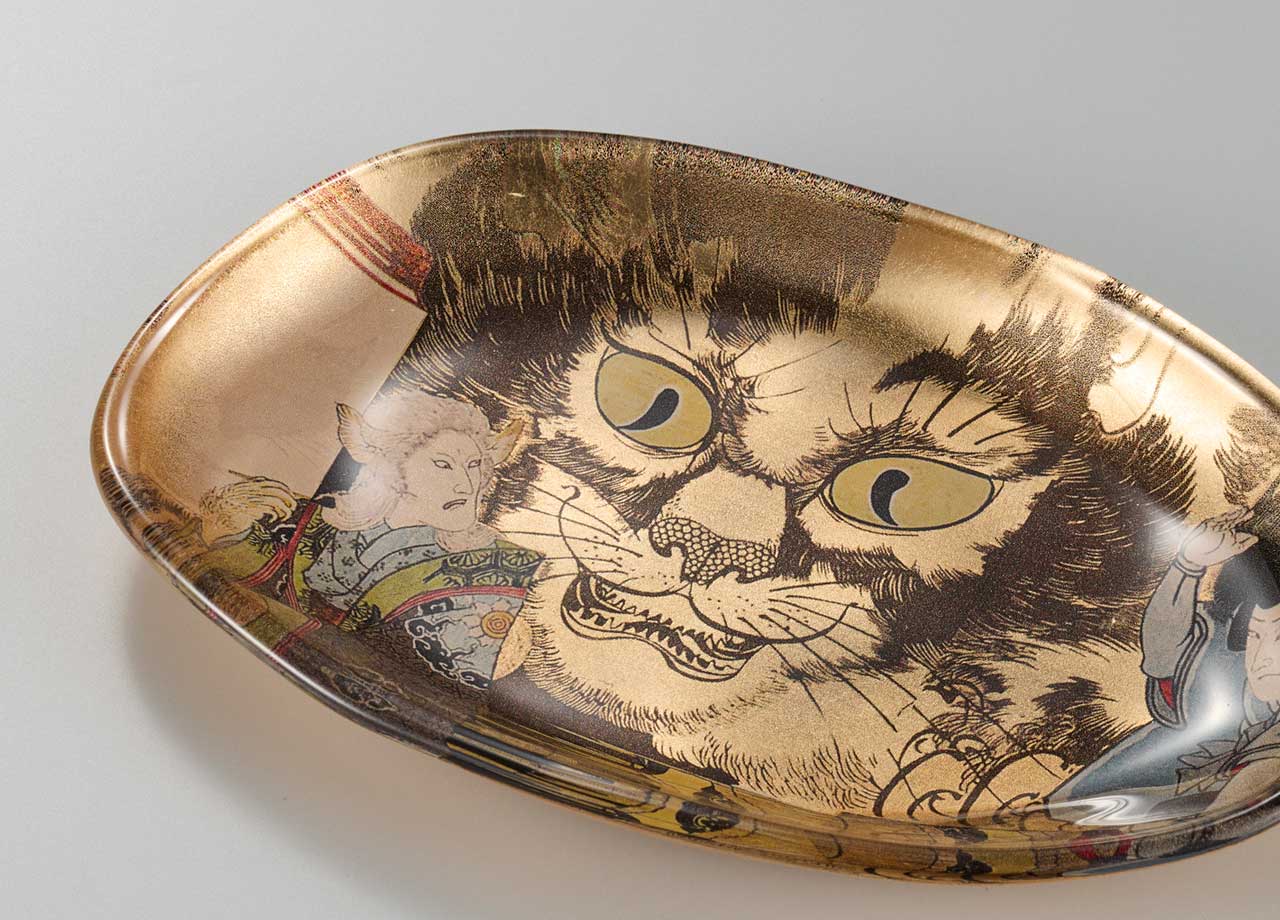 Gold Leaf Art Glass Tray – Bakeneko(Monster Cat)【Free Shipping】