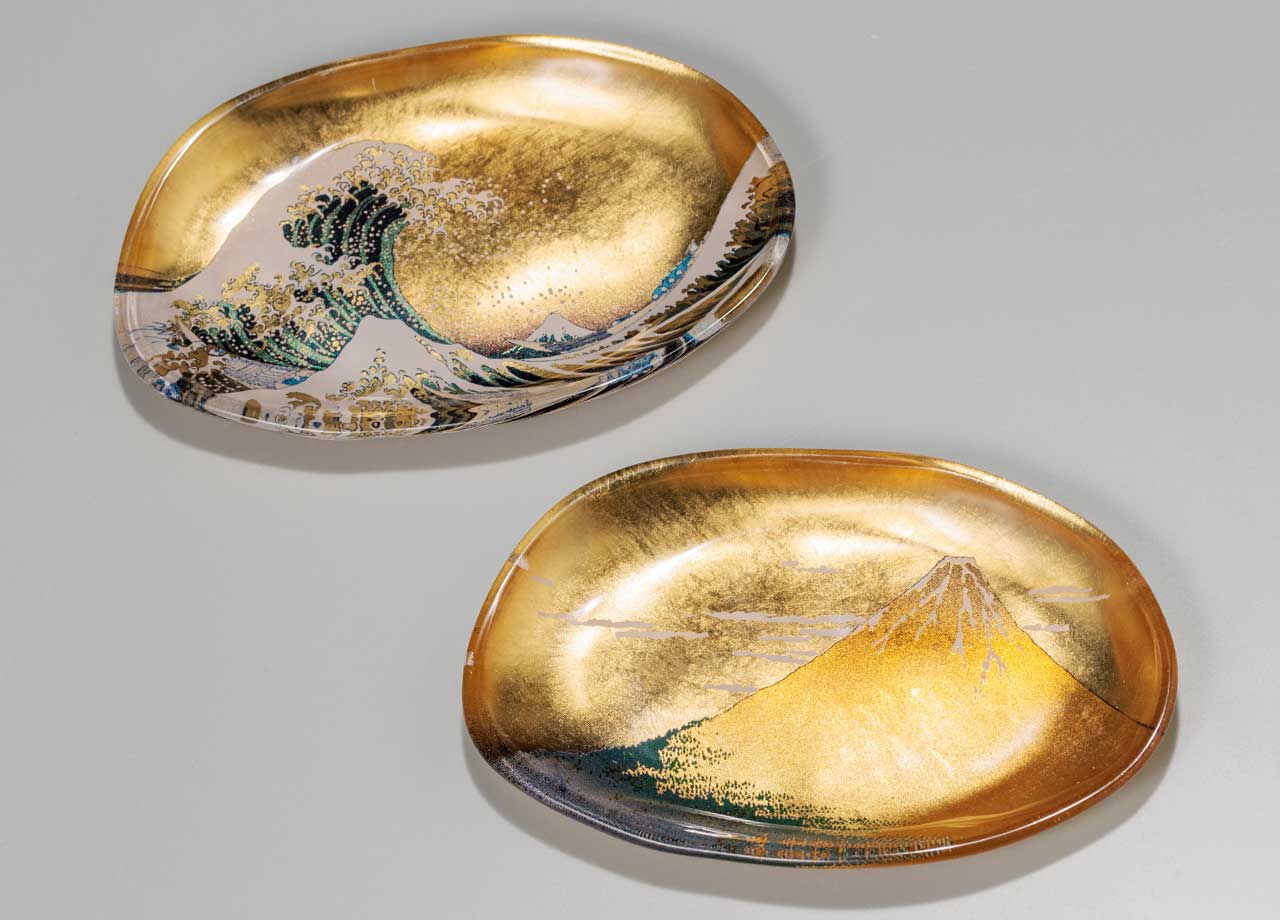 A Masterpiece by the World-Renowned Ukiyo-e Artist Katsushika Hokusai, Captured on a Glass Tray