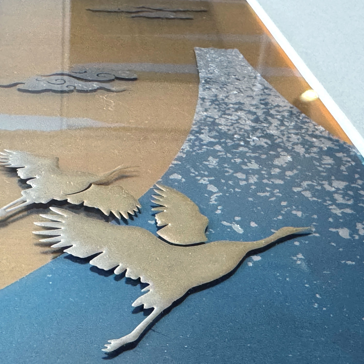Each Good Fortune Gold leaf Framed art fuses modern materials with traditional Kanazawa gold leaf techniques. Acrylic layers form the composition, dividing the motifs into sky, Mt. Fuji, and clouds. This three-layer structure creates a sense of depth, transforming the flat beauty of ukiyo-e into a dynamic, dimensional expression.